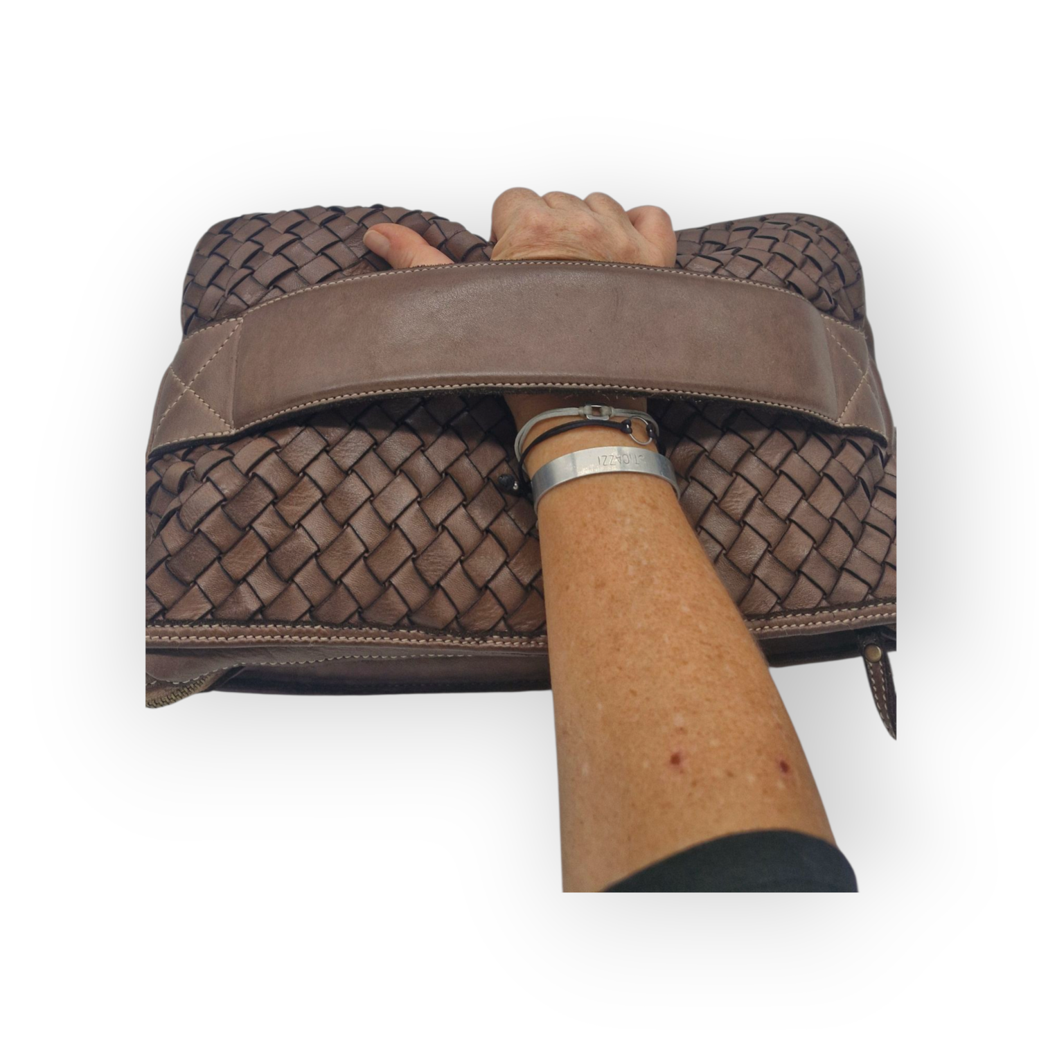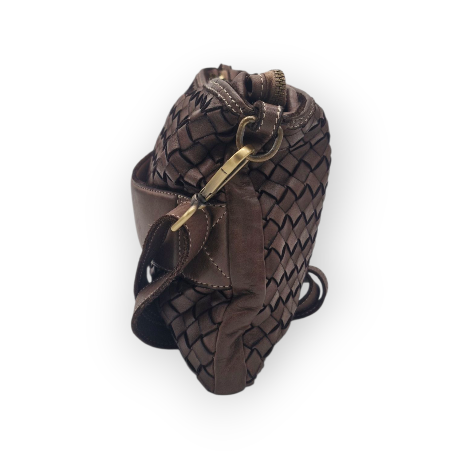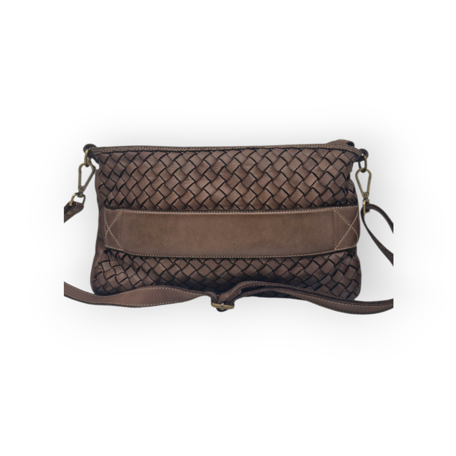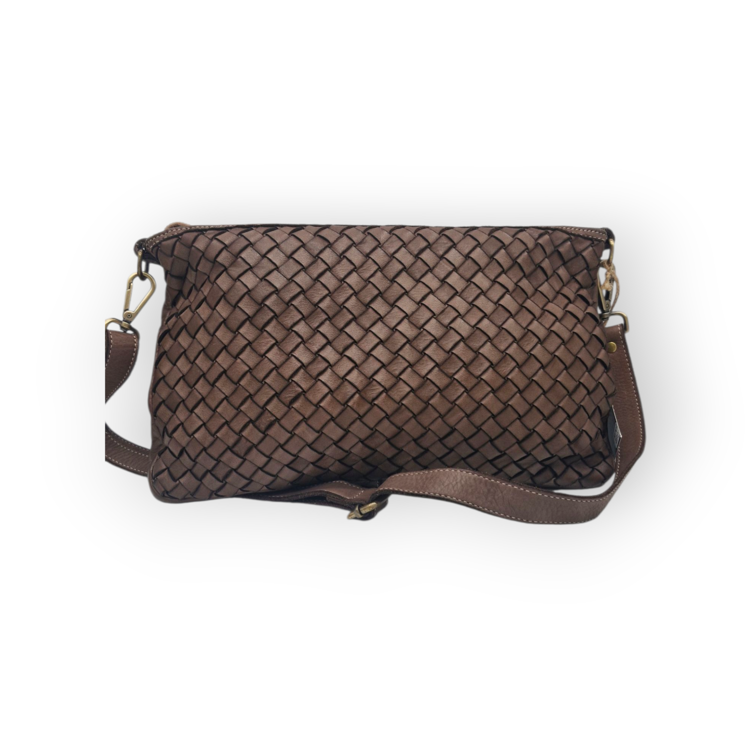 Borsa a tracolla in vera pelle di vitello intrecciata a mano.