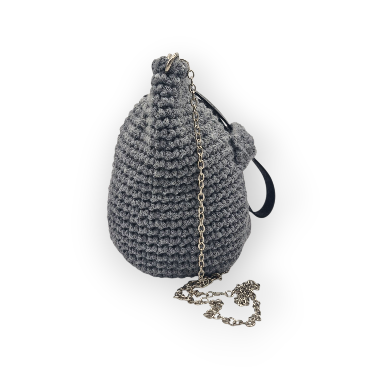 Borsetta a polso, o tracolla, in cordino lanato lavorato ad uncinetto