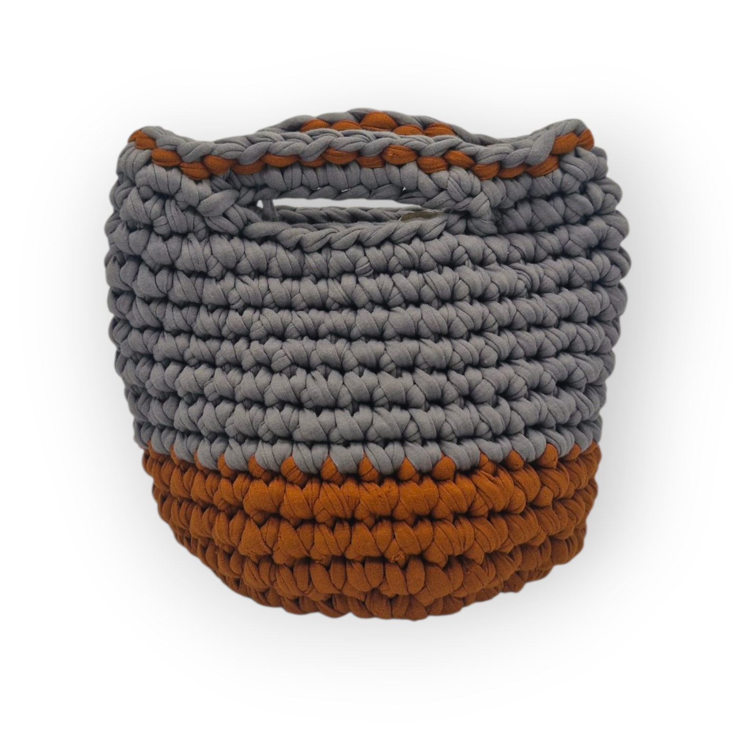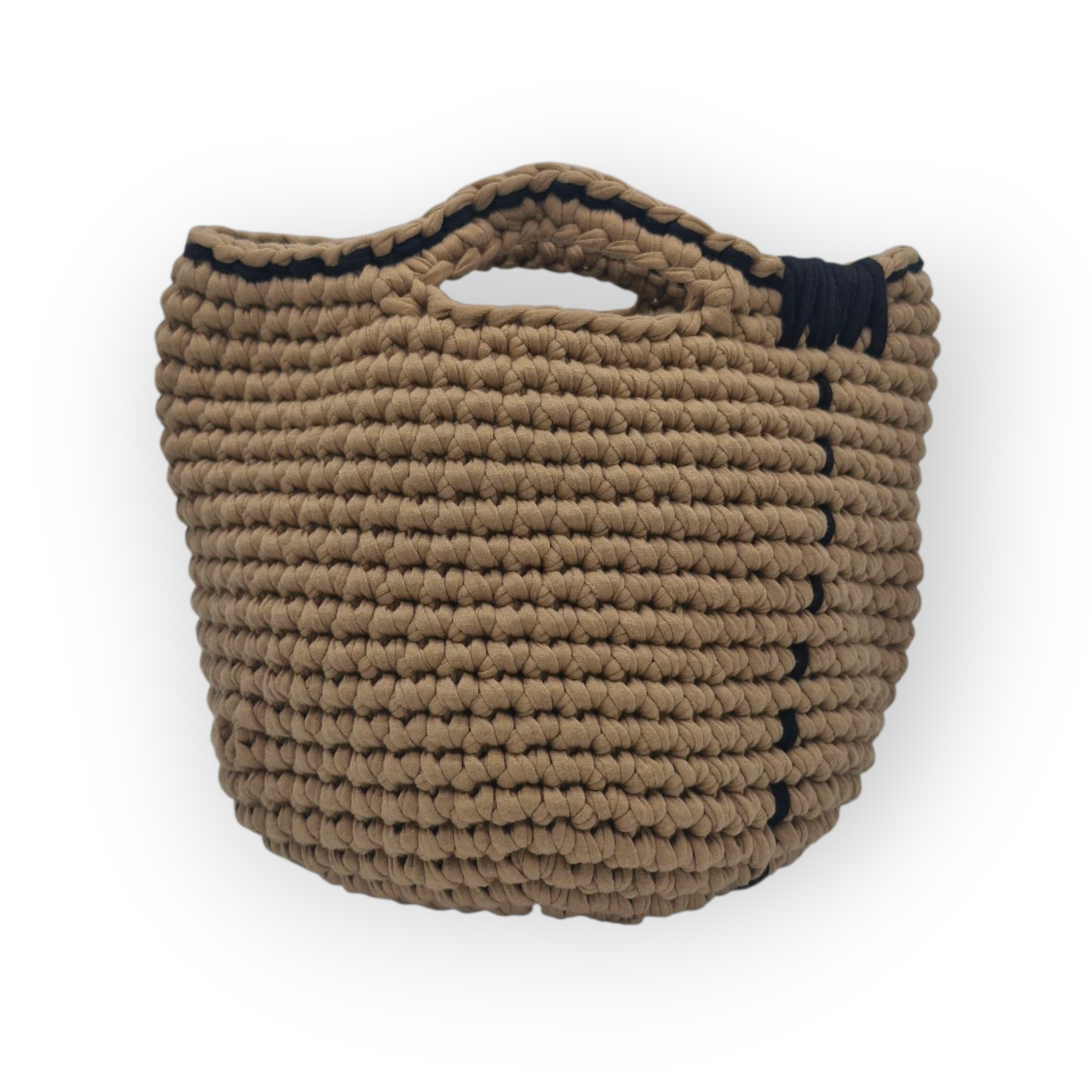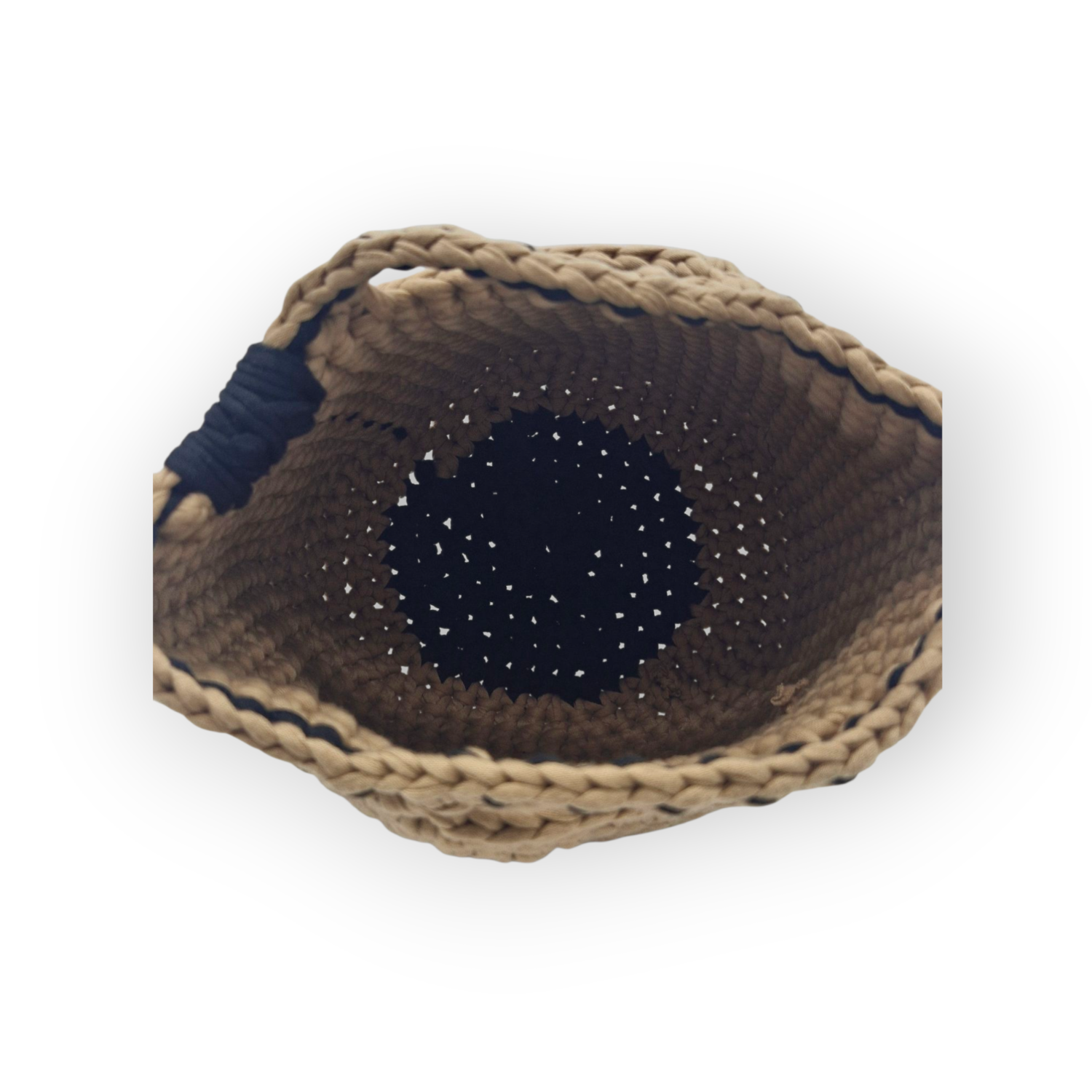 Borsa artigianale lavorata ad uncinetto in fettuccia.