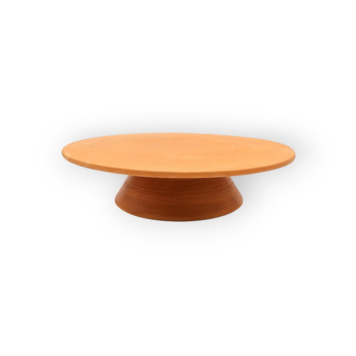 Alzatina in ceramica eseguita al tornio disponibile in due versioni : con decorazione chattering sia sul piano che sul piedistallo di dimensioni in cm diametro 23.5 H 10,5; Sand con finitura impalpabile ispirata alla natura di dimensioni in cm diametro 25 H 5.