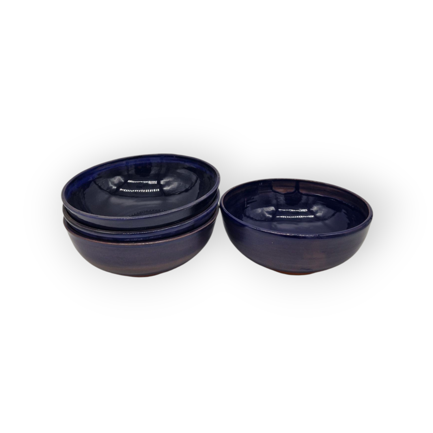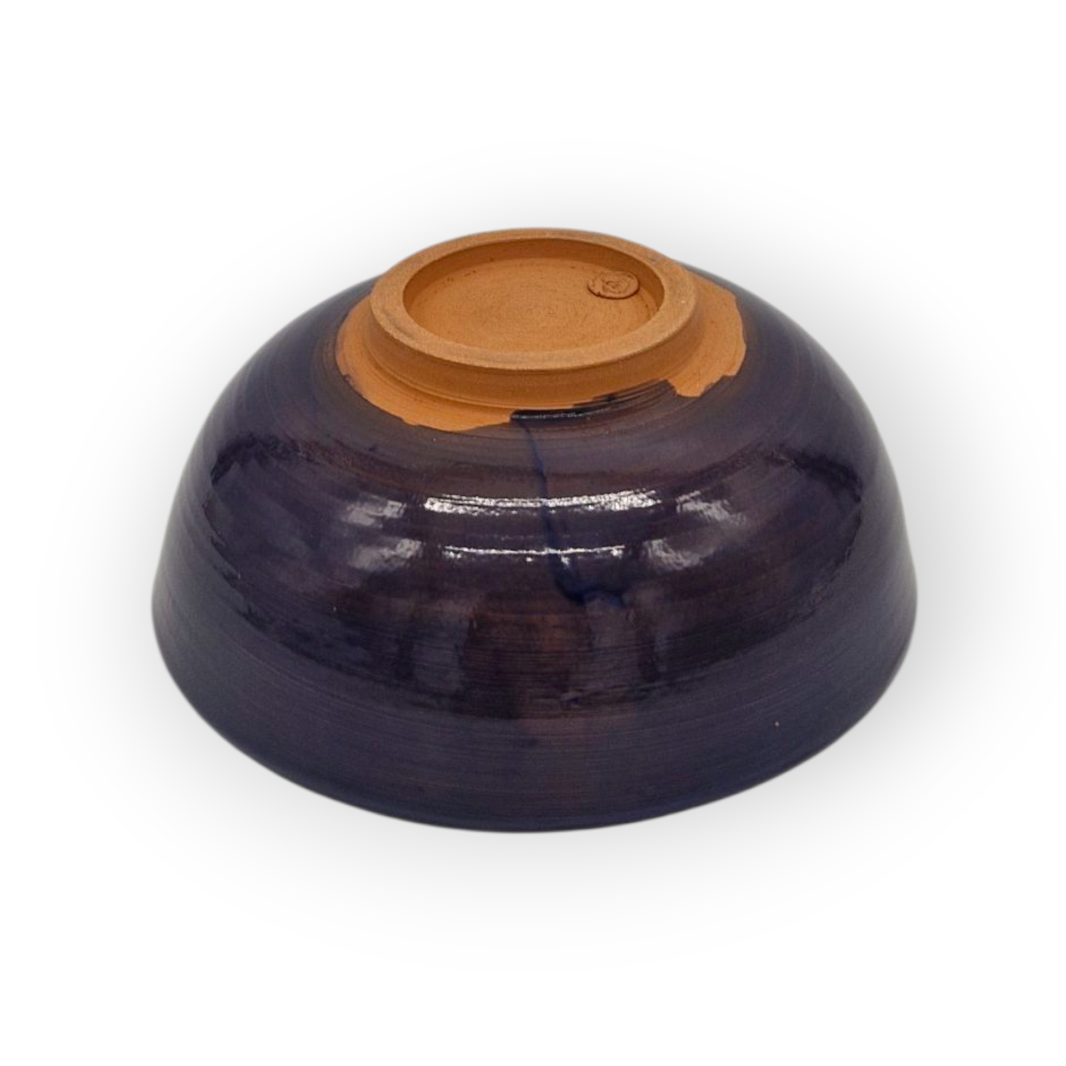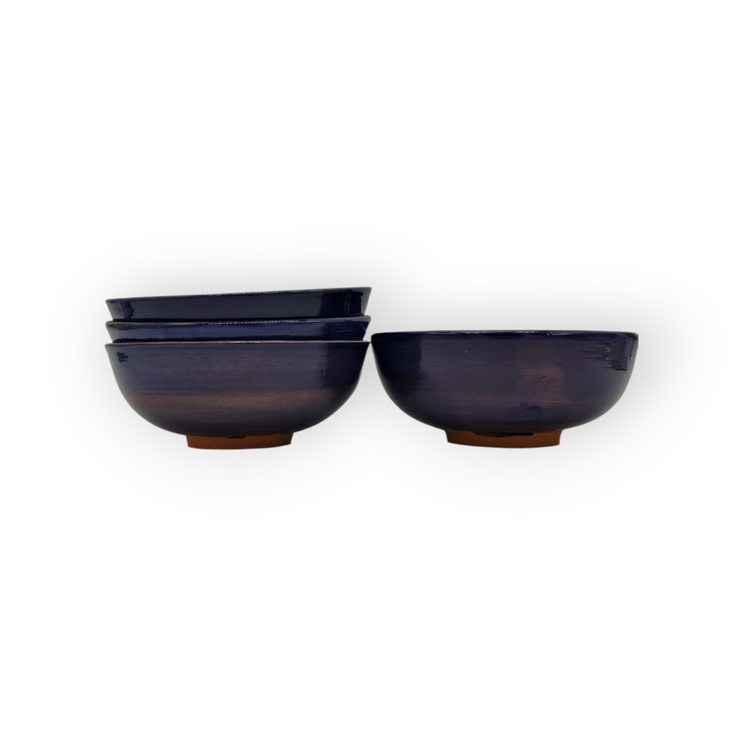 Scodella artigianale al tornio in terra rossa smaltata Blu Cina