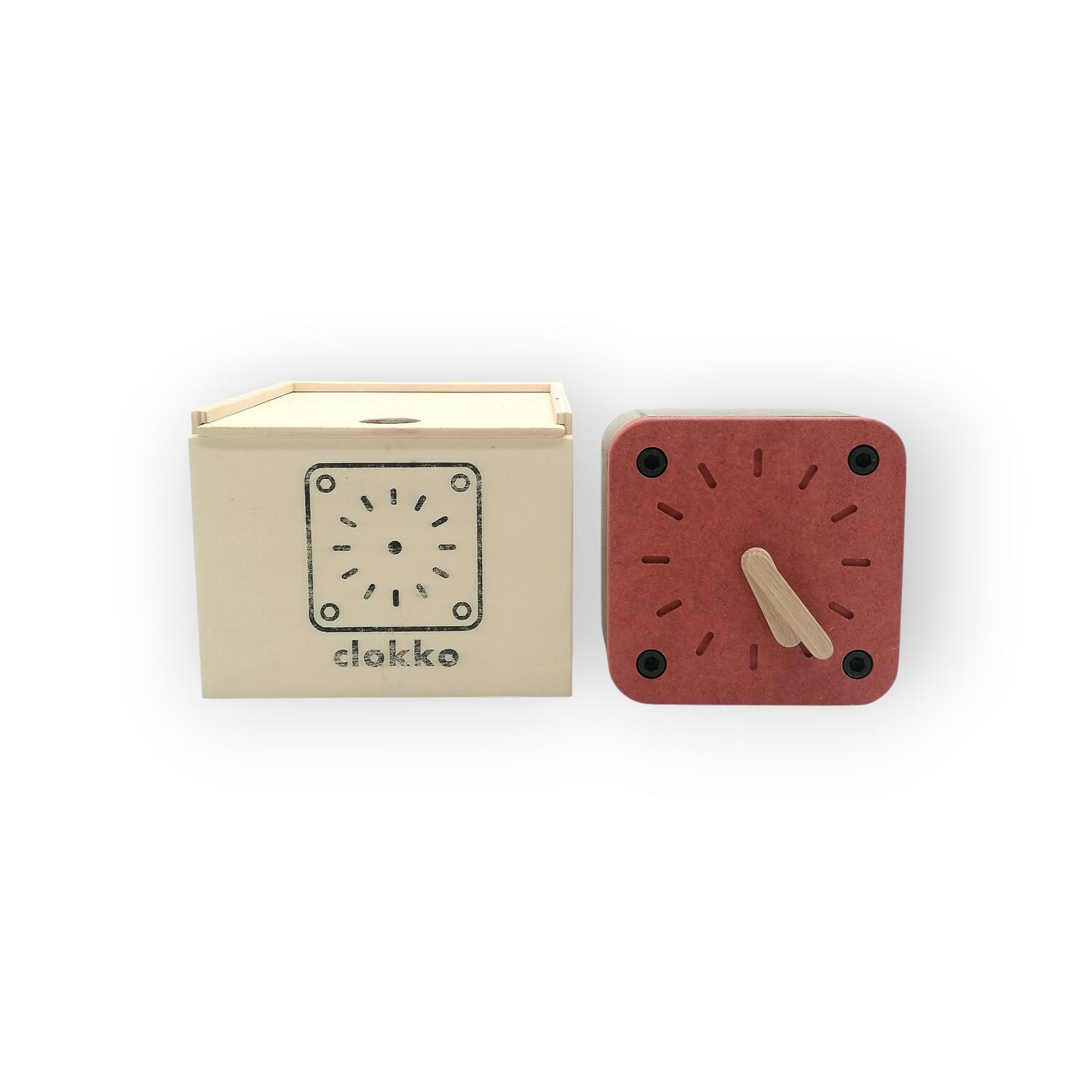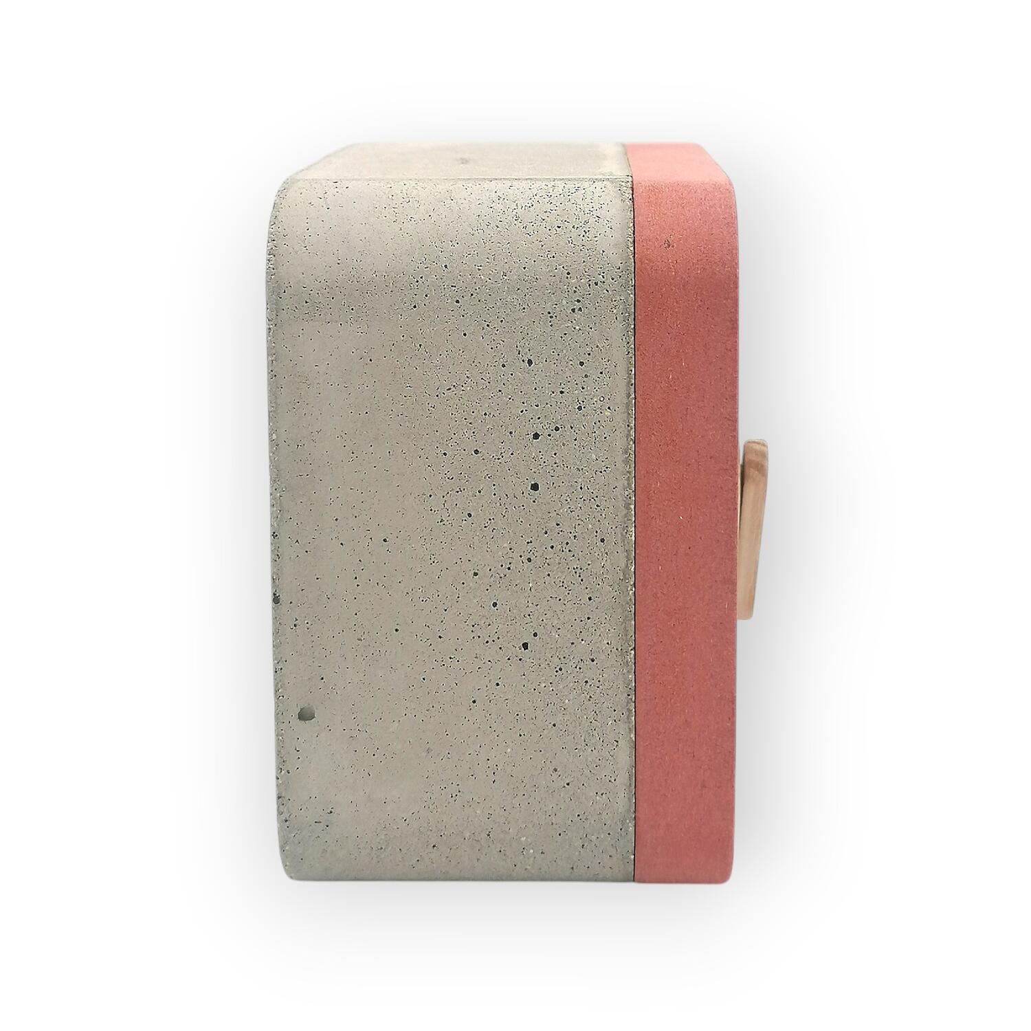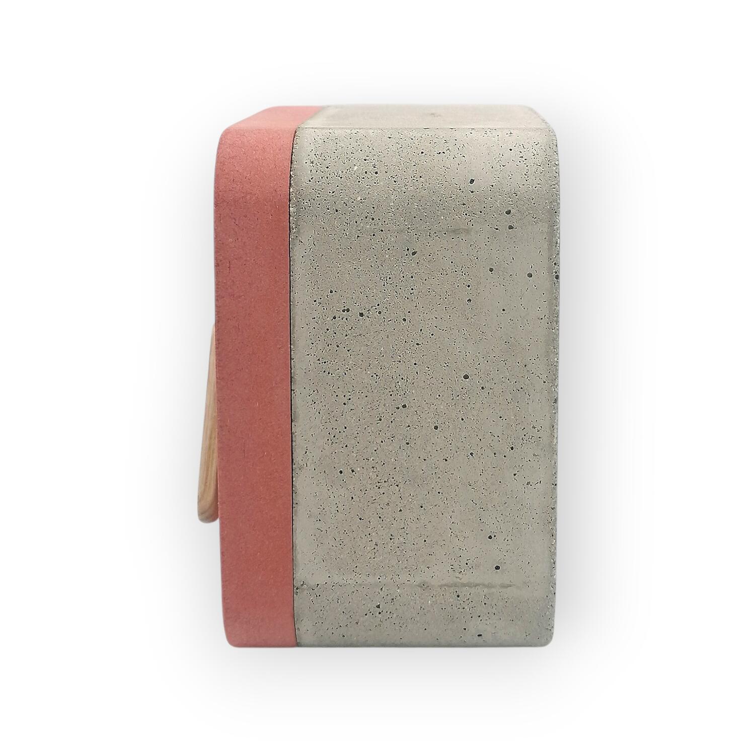 La cassa è relaizzata in cemento tramite stampo, il quadrante in Valchromat, un materiale innovativo disponibile in varie colorazioni, le lancette in legno massello.