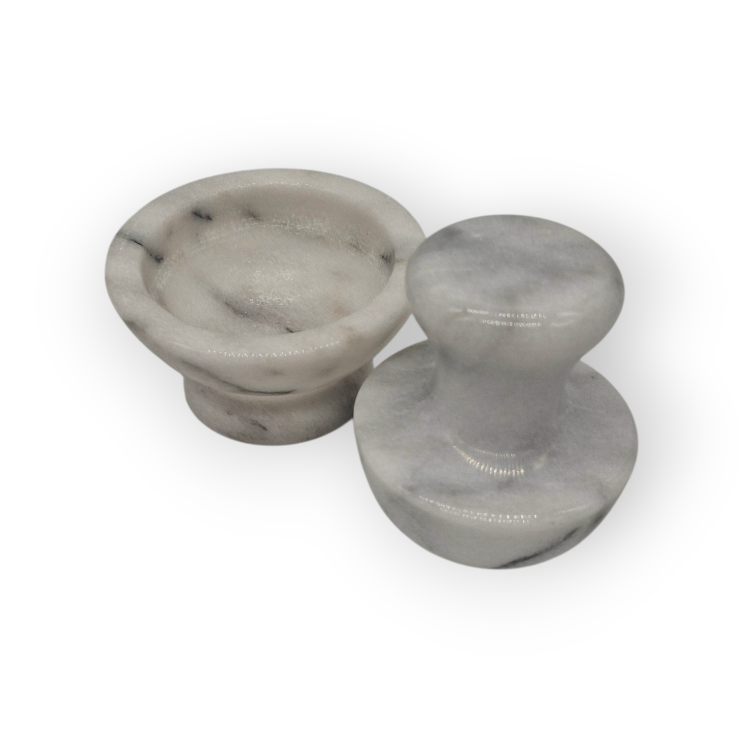 Macina per polverizzare spezie e semi, o per schiacciare l'aglio, in vero Marmo Bianco Carrara.