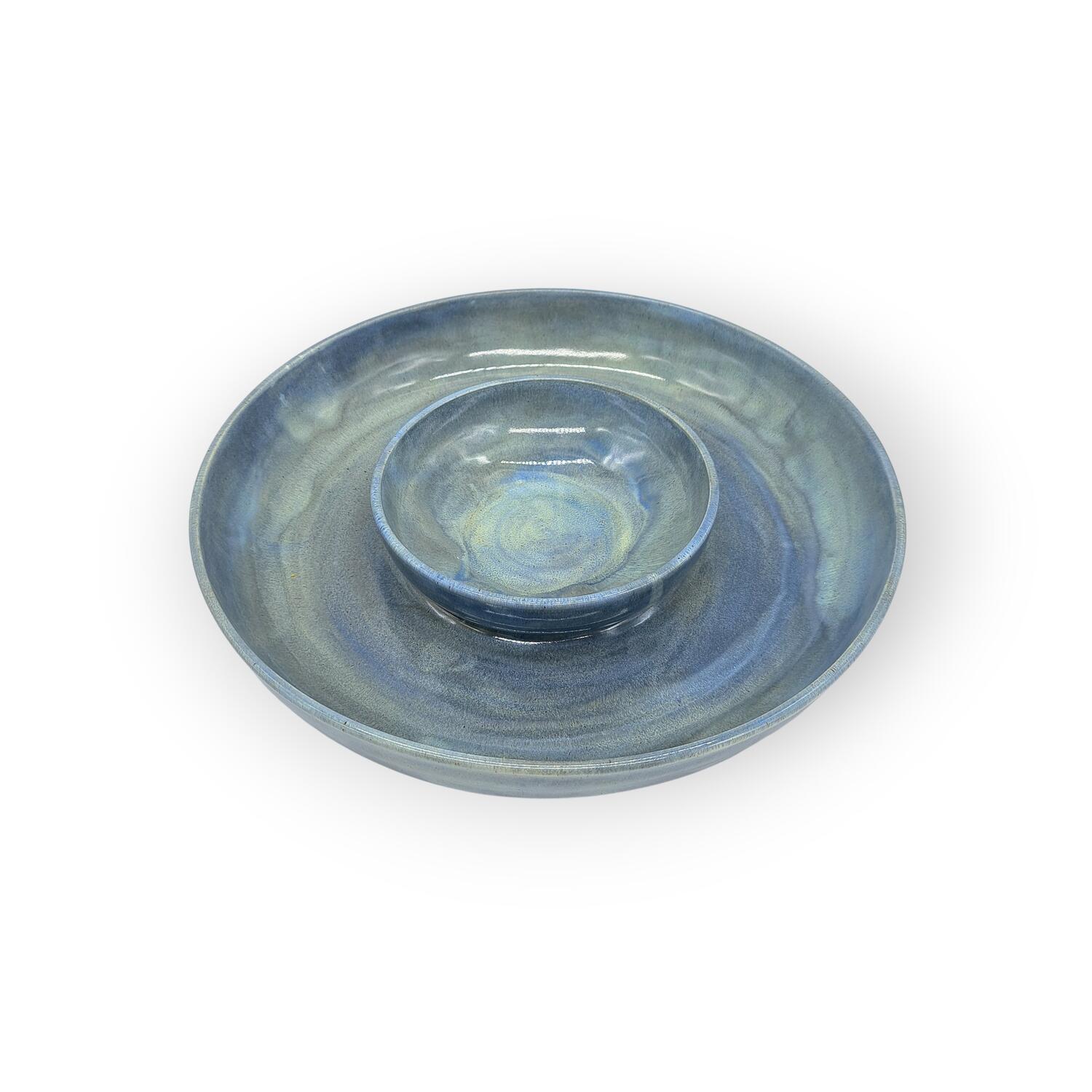 Splendido piatto da aperitivo con bordo rialzato e ciotola centrale.